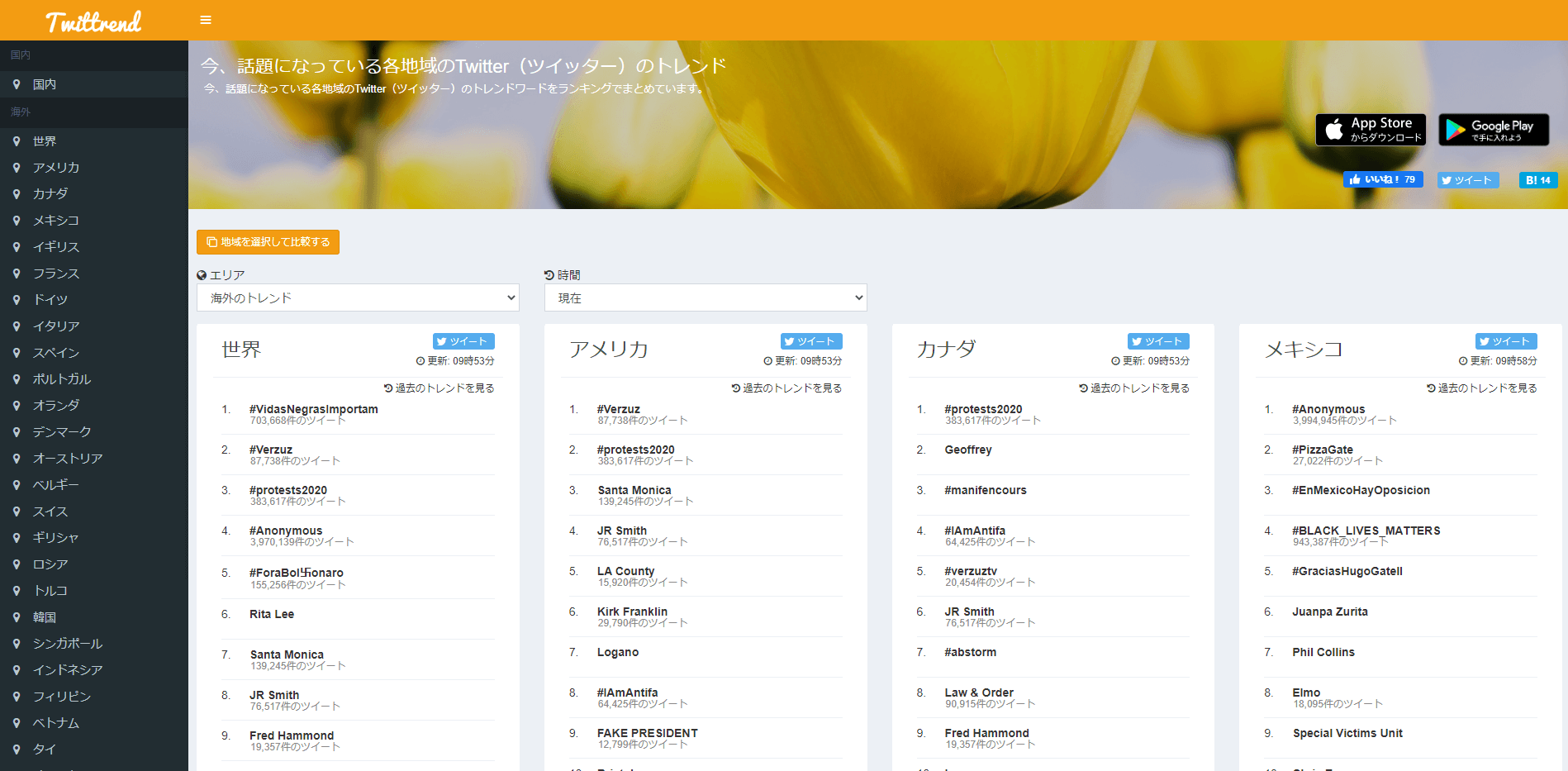 Twittrend(ついっトレンド)は、今、話題になっている各地域のTwitter(ツイッター)のトレンドをまとめています。Twittrendで、今、話題の各地域のTwitter(ツイッター)のトレンドをすぐに確認することができます。